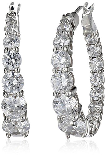 Platinum or Gold-Plated Sterling Silver Swarovski Zirconia Graduated Hoop Earrings, 1" Diameter