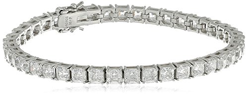 Platinum-Plated Sterling Silver Swarovski Zirconia Asscher Cut Tennis Bracelet (5mm), 7.25"