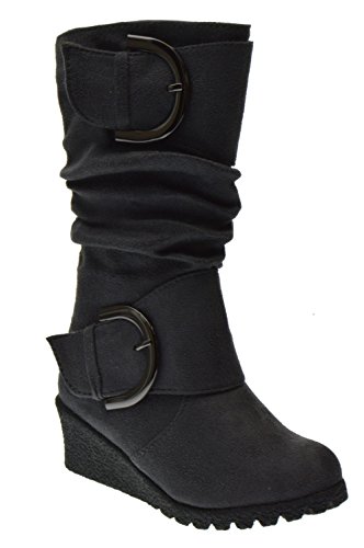 TOP Moda Pure 2K Little Girls Wedge Shearling Boots Grey 10