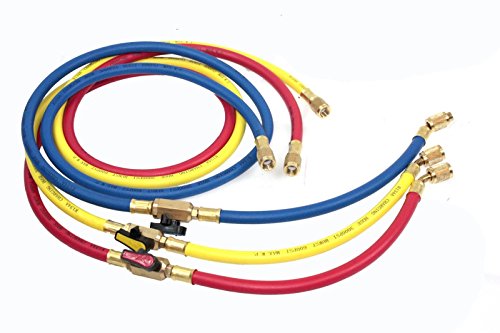 3 Color AC Charging Hoses 60" HVAC 1/4" w/Shut Valve AC Refrigerant R410a R134a