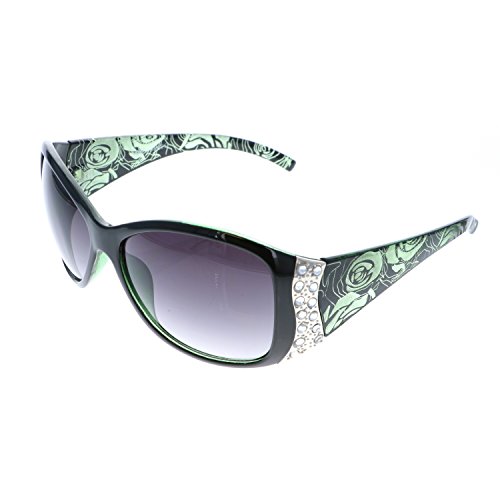 Vox Women's Sunglasses Designer Sport Fashion Rhinestone Vintage Floral Eyewear – Black Frame – Smoke Lens