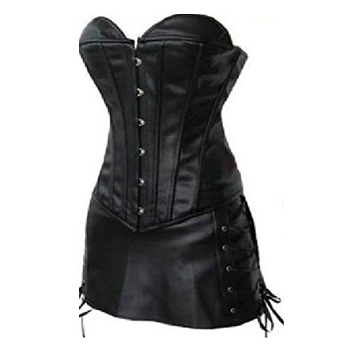 SEXY GOTH PUNK Faux Leather Corset Bustier TOP Skirt/Mini Dress Plus Size (UK(14-16) 2XL, Black)