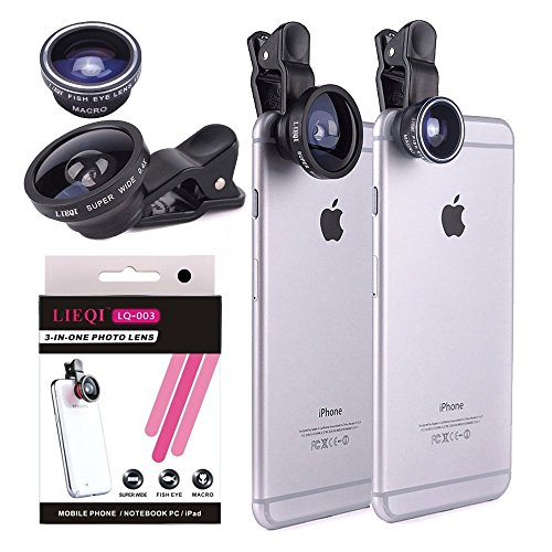 iPhone Lens for 6/6s/7 Plus, Fish Eye + Macro + Wide Angle 3 in 1 Clip-on Camera Lens Kit for Most Smartphones(Black)