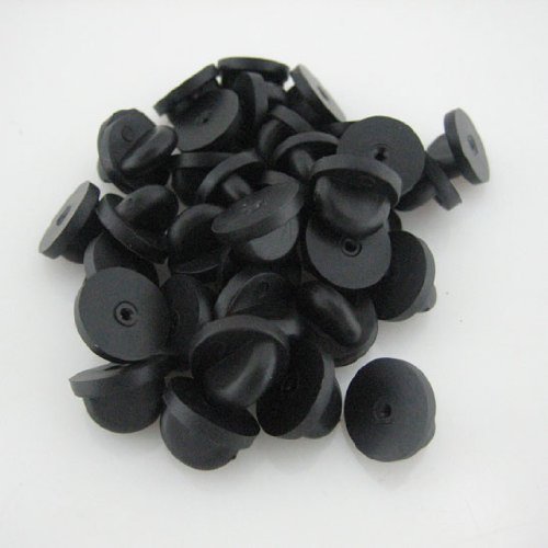 Pack of 100 Black PVC Rubber Pin Backs - Butterfly Clutch