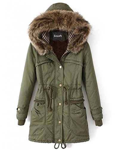 Roseate Women's Long Quilted Coat Green Casual Parkas with Faux Fur Hood