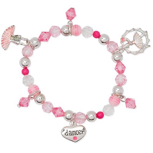Heirloom Finds Pink Ballerina Girls Ballet Dance Beaded Stretch Heart Charm Bracelet