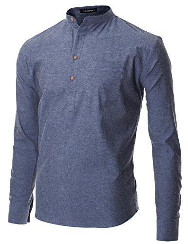 FLATSEVEN Men's Casual Mandarin Collar Popover Shirt