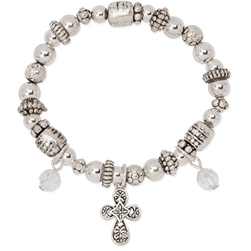 Heirloom Finds Silver Tone Cross Girls Stretch Charm Beaded Stretch Bracelet