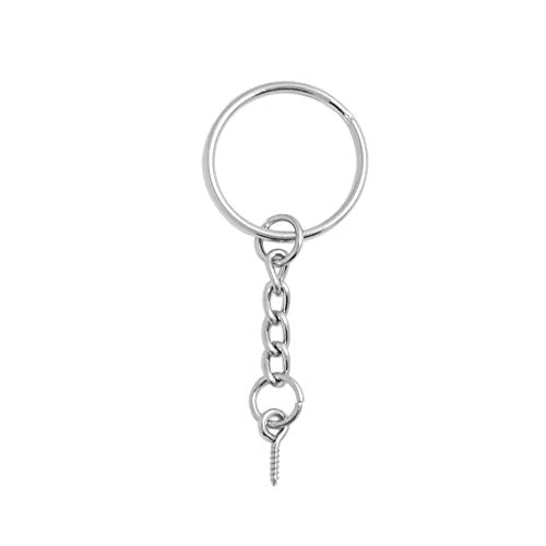 YOYOSTORE 50 Silver Tone Round 24mm Split Key Ring Keychain W/attached Extend Chain Eye Screw Eye Pin Bails Top Drilled Connectors Pendant Bail
