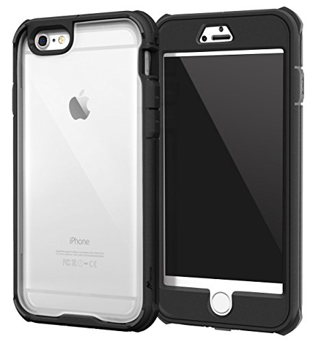 iPhone 6s Plus Case, roocase [Glacier TOUGH] iPhone 6 Plus (5.5-inch) Hybrid Scratch Resistant Clear PC / TPU Armor Full Body Protection Case Cover with Built-in Screen Protector for Apple iPhone 6 Plus, Granite Black