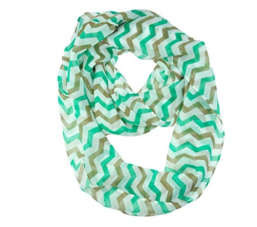 WishCart Girls' Infinity Scarf loop neck scarves with stripe Printed colorful green grey off white