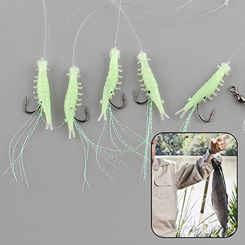 RelefreeĀ® 1pack Sabiki 5 Shrimp Rigs Glitter Glow in the Dark Fish Saltwater Fishing Bait Baits Lure Catch Catching Size16 Hook Tackel New