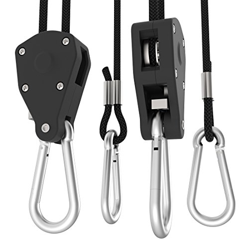 VIVOSUN 1-Pair 1/8 inch 8ft Adjustable Heavy Duty Grow Light Rope Hanger w/Reinforced Metal Internal Gears, Loose-Proof Design (150lbs Weight Capacity)