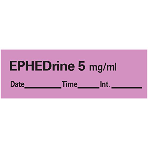 PDC Healthcare AN-5D5 Anesthesia Tape with Date, Time and Initial, Removable, Ephedrine 5 mg/mL, 1" Core, 1/2" x 500", Imprints Violet 333 (Pack of 1)