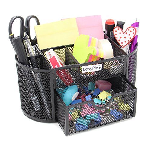 EasyPAG Desk Organizer Black Mesh Office School Desktop Supply Caddy with Slide Drawer