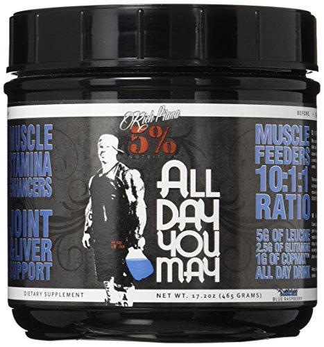Rich Piana 5% Nutrition All Day You May BCAA & Joint Recovery Drink (Blue Raspberry) 17.2oz (465g) 30 Servings
