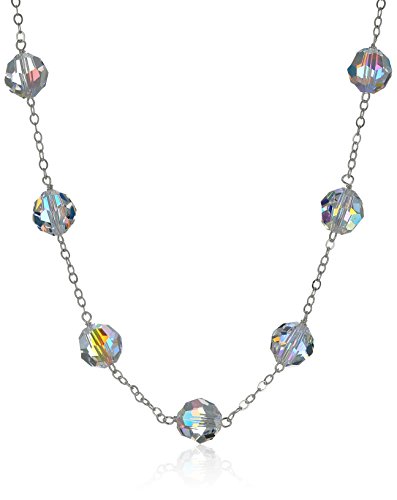 Sterling Silver Crystal Aurora Borealis Swarovski Element Beads Tin Cup Chain Necklace, 18"