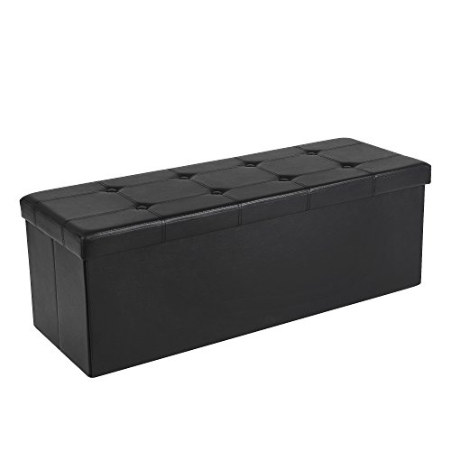 SONGMICS 43 Inches Folding Storage Ottoman Bench, Storage Chest Footrest Padded Seat, Faux Leather, Black ULSF701