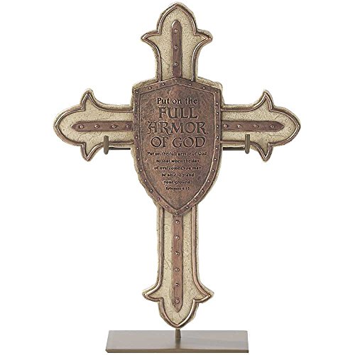 Full Armor of God Shield 9.5 x7.5 Resin Stone Table Top Cross