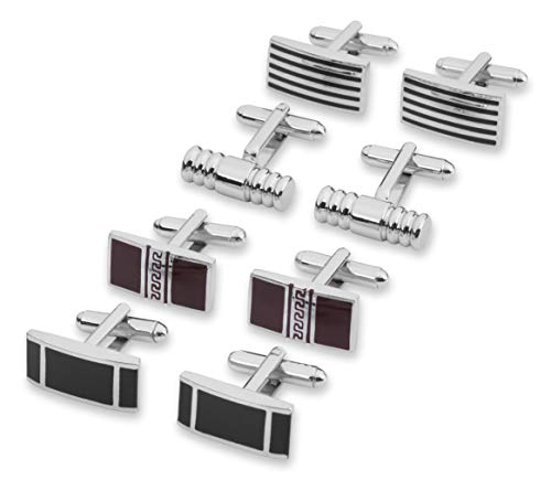4 Pairs of Classic Cufflinks for Men By Velette (Silver 1)