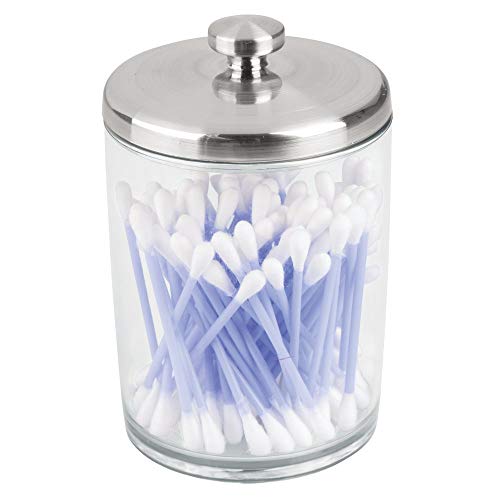 iDesign Gina Plastic Bathroom Vanity Canister with Lid for Cotton Balls, Swabs, Cosmetic Pads, Candy, 3.25" x 3.25" x 5" - Clear and Brushed Nickel