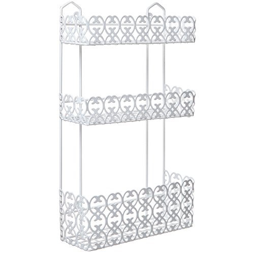 MyGift Decorative White Wall Mounted 3 Tier Shelf Baskets/Kitchen Spice Rack/Bathroom Product Holder