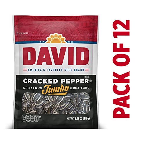 DAVID Roasted and Salted Cracked Pepper Jumbo Sunflower Seeds, Keto Friendly, 5.25 oz, 12 Pack