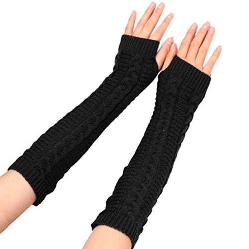 Novawo Women's Winter Long Soft Acrylic Sleeve Fingerless Arm Warmers Gloves (Black)