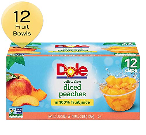 DOLE FRUIT BOWLS, Yellow Cling Diced Peaches in 100% Fruit Juice, 4 Ounce (12 Cups)