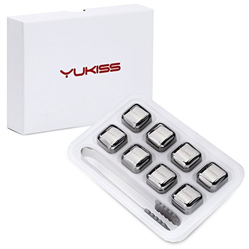 Whiskey Stones - Yukiss Set of 8 with Plastic Storage Box Tongs, Stainless Steel Reusable Wine Ice Cubes, Beer Chilling Rocks and Whisky Stones