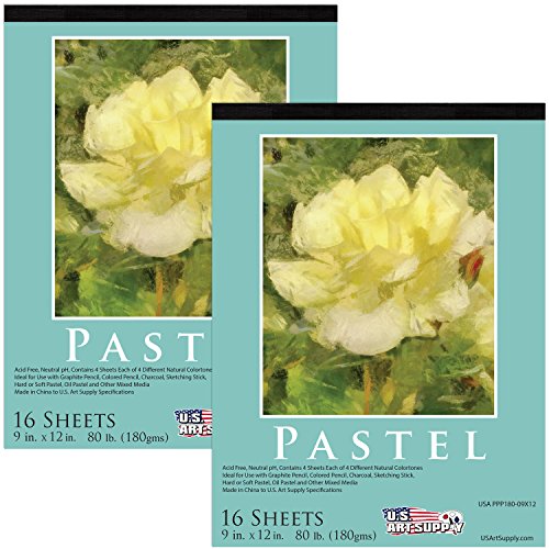 U.S. Art Supply 9" x 12" Premium Pastel Paper Pad, 80 Pound (180gsm), Assorted Natural Tone Paper Colors, Pad of 16-Sheets (Pack of 2 Pads)