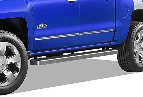 APS iBoard Running Boards 4 inches Custom Fit 2007-2018 Chevy Silverado GMC Sierra & 2019 2500 HD 3500 HD Crew Cab (Exclude 07 Classic)(Include 19 1500 LD) (Nerf Bars Side Steps Side Bars)