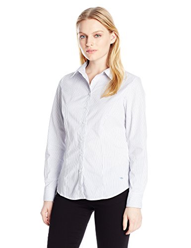 Dockers Women's Ideal Long Sleeve Stretch Shirt, Deep Blue Delft, Petite/X-Large