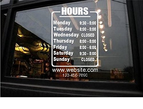 StickerLoaf Brand STORE HOURS NAME CUSTOM WINDOW DECAL BUSINESS SHOP Storefront VINYL DOOR SIGN COMPANY Bakery Cafe restaurant studio salon garage