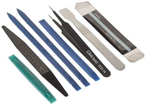 Professional Opening Pry Tool Repair Kit with Non-Abrasive Nylon Spudgers and Anti-Static Tweezers, 8 Piece Set