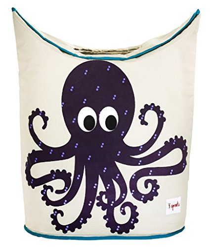3 Sprouts Baby Storage Basket Organizer Bin Laundry Hamper for Nursery Clothes, Purple Octopus