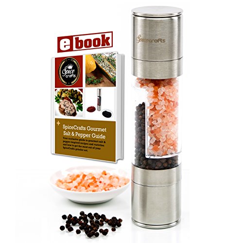 Lifestyle Dynamics The Original SpiceCrafts Salt and Pepper Grinder Set, Stainless Steel with Recipe eBook & Guide, Pure Ceramic Grinders, Dual Mill