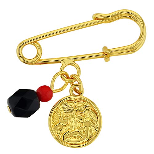 In Season Jewelry 14k Gold Plated Simulated Azabache Guardian Angel Protection Baby Brooch Pin