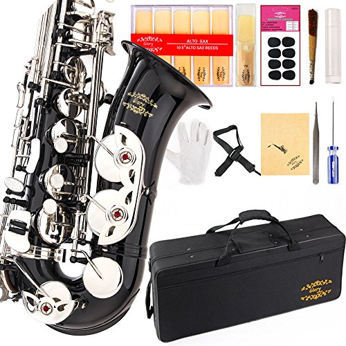 Glory Black/Silver keys E Flat Alto Saxophone with 11reeds,8 Pads cushions,case,carekit-More Colors with Silver or Gold keys