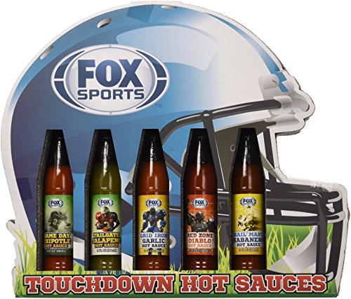 Fox Sports Touchdown Hot Sauces Gift Package - Chipotle, Jalapeno, Garlic, Diablo, Habanero