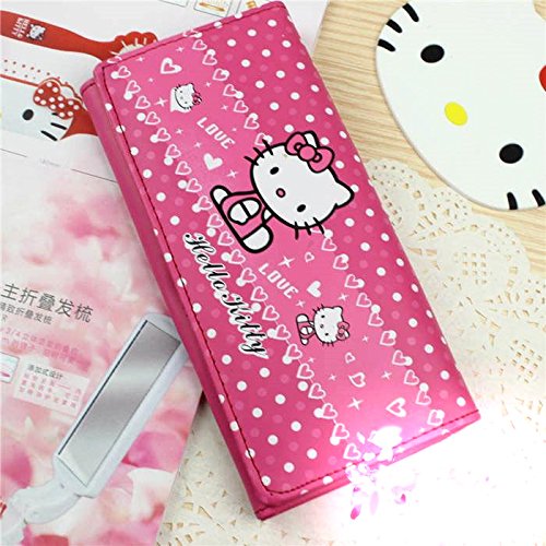 Cute Cartoon Wallet for Students Hello Kitty Long Pu Leather Wallet Rose Red
