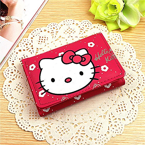 Decorating Girls Three Fold Leather Purse Hello Kitty Pattern Clutch Short Wallet Handbag Rose Red