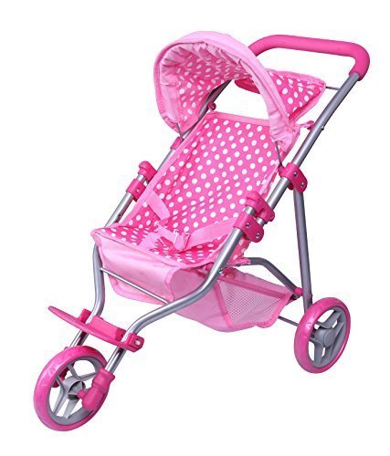 Precious Toys, Pink & White Polka Dots Foldable Doll Stroller Jogger, Foam Handles, and Hot Pink Frame