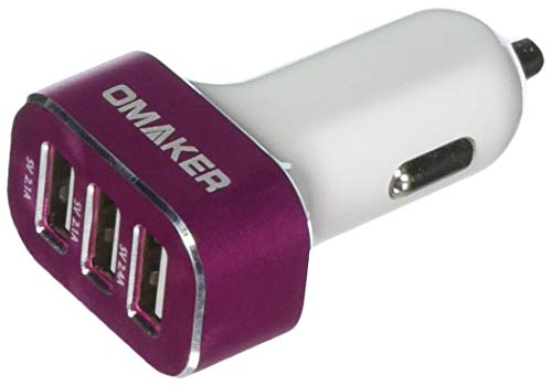 Omaker Intelligent 6.6A / 33W Premium Aluminum 3 USB Car Charger with Smart Sharing IC for Each USB Port- Hot Pink
