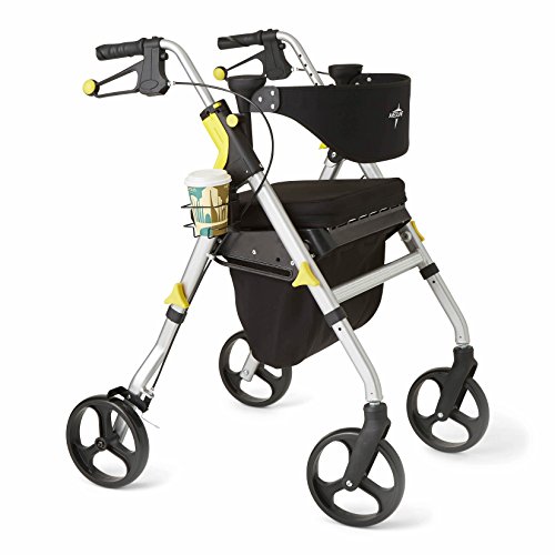 Medline Premium Empower Rollator Walker with Seat, Folding Rolling Walker with 8-inch Wheels, Silver