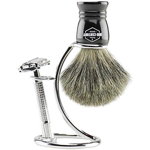 MCS Premium Safety Razor Shaving Kit: Complete Wet Shave Set w/Double Edge Razor, Pure Badger Brush, Heavy Chrome Stand, Travel Case, Extra Blades & Gift Box (Black)