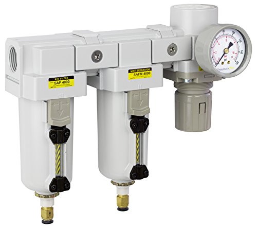 PneumaticPlus SAU4030M-N06DG-MEP Three Stage Air Drying System - Air Particulate Filter, 0.3 Micron Coalescing Filter & Air Pressure Regulator Modular Combo 3/4" NPT - Auto Drain, Metal Bowl