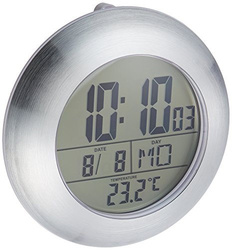hito 6.8”Large Waterproof Bathroom Shower Clock Wall Silver Aluminum Date Day Indoor Temperature Suction Cup and Stand (Aluminum finish)