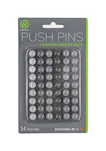 U Brands Fashion Steel Push Pins, Black White & Gray Assorted Colors, 54 Count