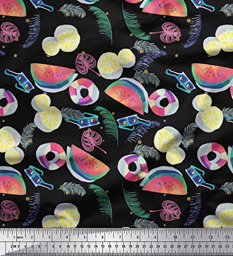Soimoi Gray Velvet Fabric Fruits,Swim Ring & Goggles Summer Designs Print Fabric by The Yard 58 Inch Wide